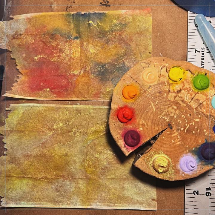 Finding joy in my new Beam watercolors and used tea bags.