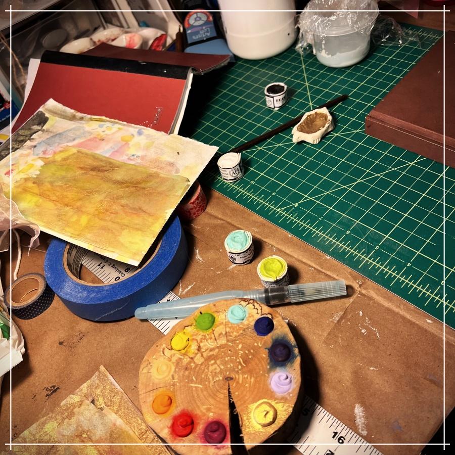 kindness I am learning to extend myself is allowing the huge creative mess I am. Creativity comes from mess and chaos. Then order. Then mess again. My art table most of the time: