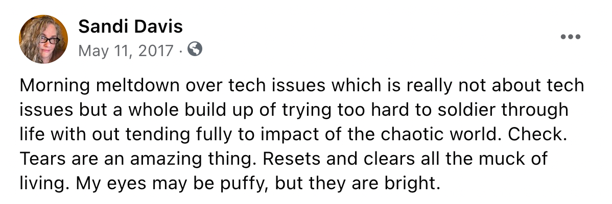 Welcome the wisdom of sadness and allow and the sacred water of tears to release, let go, and clear away.