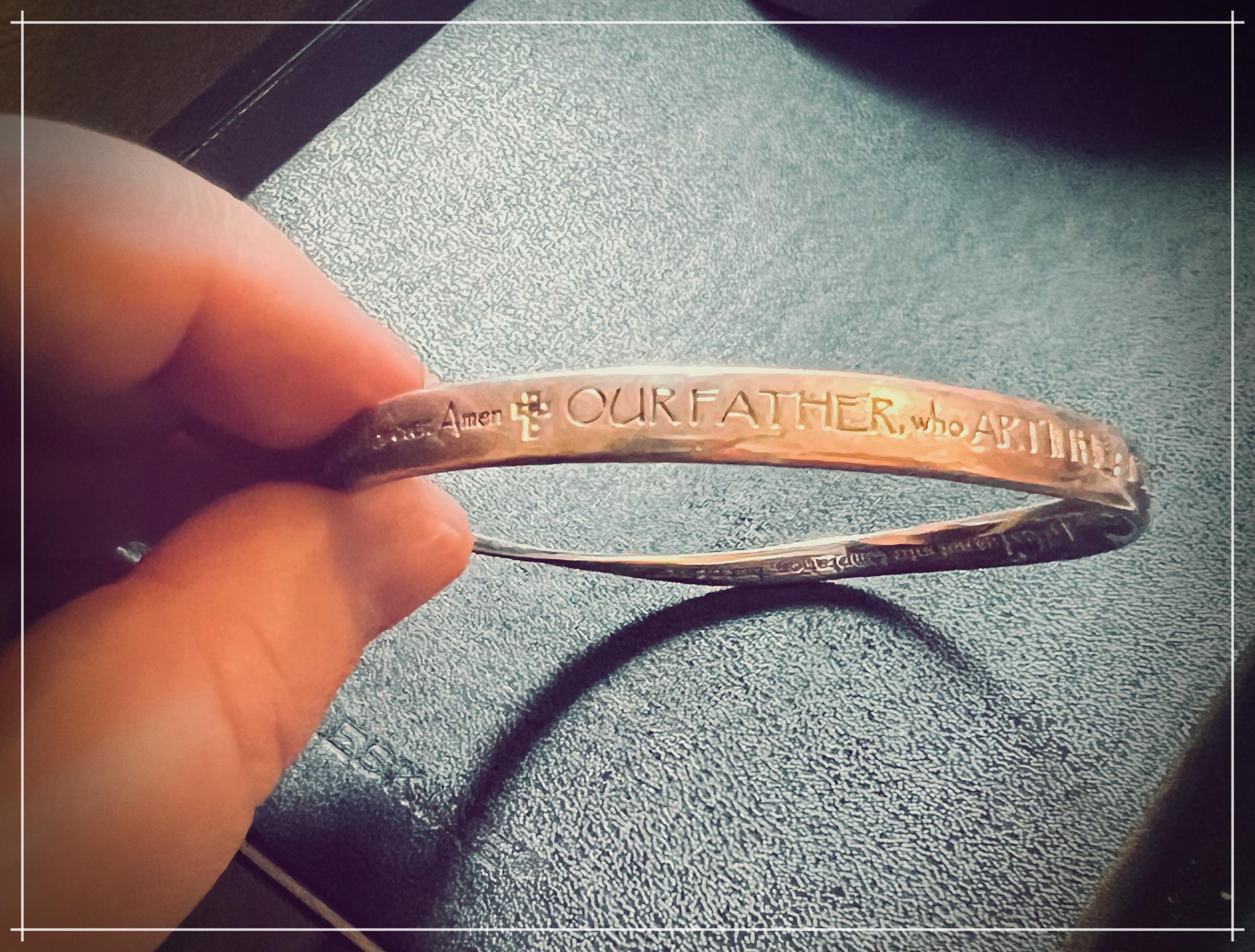 I had a thought the night before that maybe I was ready to take off the bracelet I have worn since I found it in her things a couple of days after she died. A mobius loop with The Lord's Prayer on it. I shooed the thought away because that seemed silly. I've worn it for over two years