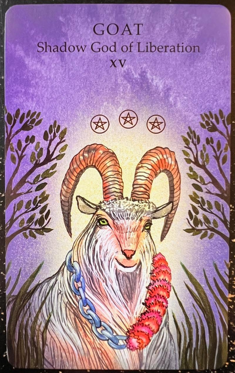 favorite phases for The Devil is "Shadow God of Liberation" from the Animal Wisdom Tarot.