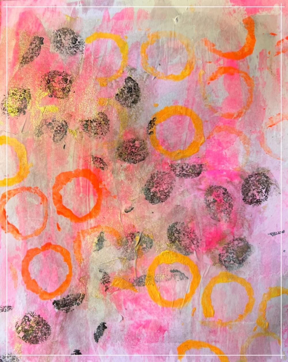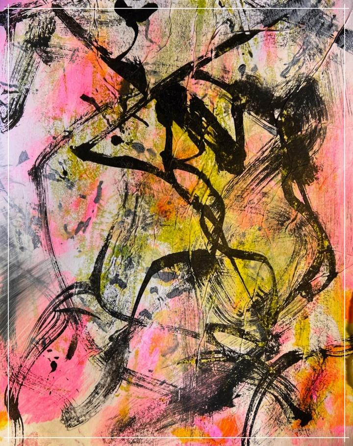 Some form of brilliant pink showed up in every painting this month. For me this is a color of freedom, boldness, and childhood dreams. It is telling me a