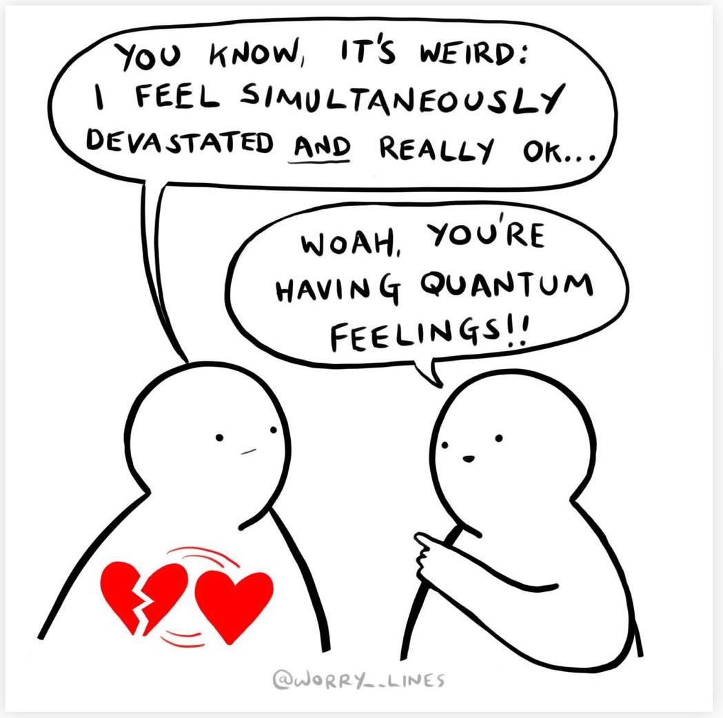 Not about joy per se, but how we feel many things at the same time. We can be in deep sadness about the harms and tragedies of the world and feel joy, hope, and love. Our emotions are quantum, as are our hearts. Without our quantum, feeling hearts joy would have no place to be welcomed into, no place to grow.