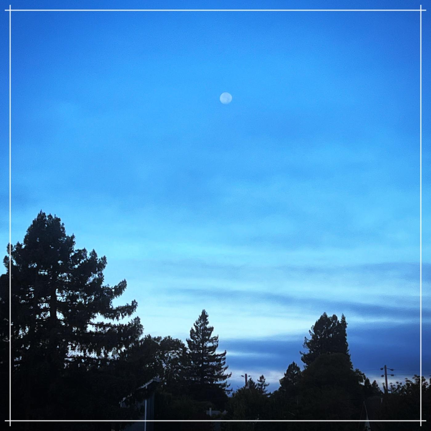 full moon still high in the morning sky.Â