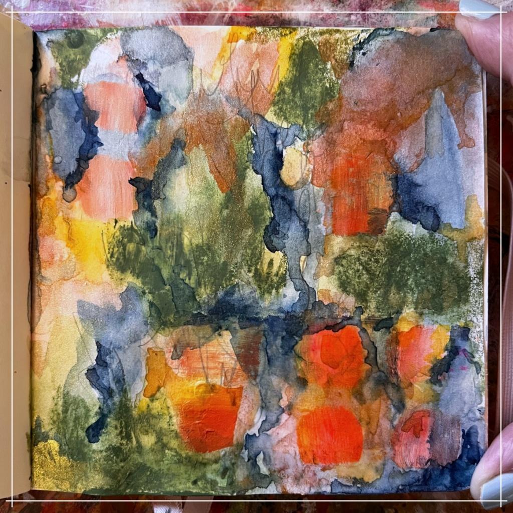 about how I am working a tiny art journal. I have stared writing a word or phase on the page as away to break up the blank page syndrome. Simple words and good watercolors, add some tiny paper scraps of bright paint. It doesn't take much to come back to myself. It is remembering to do so that is the practice.