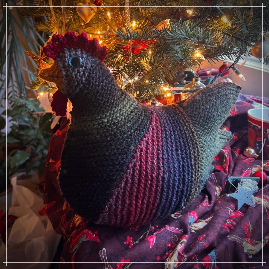She is my emotional support chicken. I cast on the day after the election, It seemed like a good time for some whimsy and comfort. She sits on my lap when the world is scary. Holding on to something soft and cute helps me regulate my over stimulated nervous system.
