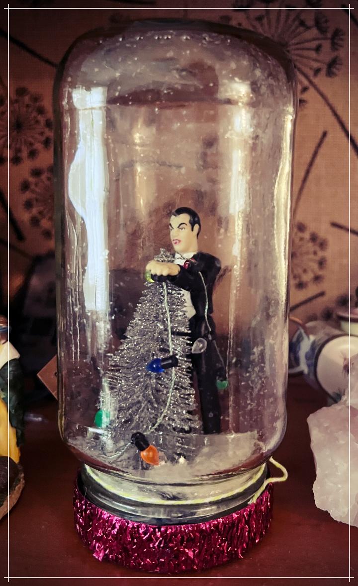 We have past Halloween which means it is holiday craft fair season. My friend Sam makes these quirky waterless snow globes and had a table at a local church